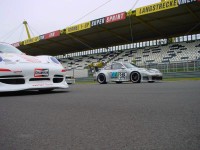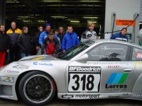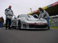 Im Zeittraining fuhr Jürgen in der ersten fliegenden Runde eine Zeit von 8.53 min. Und das auf gebrauchten Reifen. In der Auslaufrunde riss dann ein Schaltzug. Die Reparatur kostete uns ca. 45 Minuten. Arno konnte dann noch eine Runde auf neuen Reifen drehen, wurde dreimal von gelben Flaggen eingebremst und schaffte trotzdem noch eine 8.49. Das bedeutete Startplatz 2 hinter dem Manthey-Porsche.