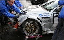 Die Streckenverhältnisse waren katastrophal, daher war äußerste Vorsicht angesagt. Doch trotzdem passierte der Super Gau. Beim Anbremsen des Streckenabschnittes Wehrseifen stieg das ABS aus und Arno schlug im stumpfen Winkel in die Leitplanke ein. Augenzeuge Marc Basseng im dicht auffolgenden Land-Porsche bestätigte die ABS Aussage des Fahrers. Offenbar blockierten alle Räder, auch ein Lösen des Bremspedals brachte nicht die erhoffte Wirkung. Zwar blieb der Fahrer heil, doch Ego und Auto waren stark beschädigt.