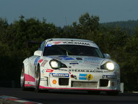 Montag 10:54 Uhr: Ich lebe noch! Nach 24:05:26.767 fährt Michael Schratz den Porsche 996 GT3 RS über die Ziellinie.