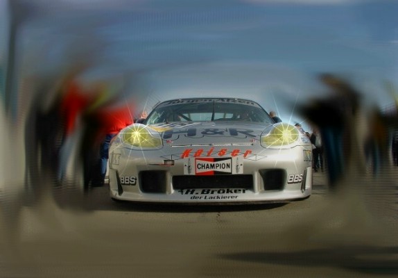 Jürgen und Arno standen in der ersten Reihe neben der von Platz 1. startenden Viper mit Rittmeier und Reh. Ins Castrol S bog die Viper als erste ein, aber aus dem Hatzenbachbogen kam dann der Porsche von Jürgen Alzen als erster, gefolgt vom Manthey Porsche.. Jedoch in den nächsten Runden