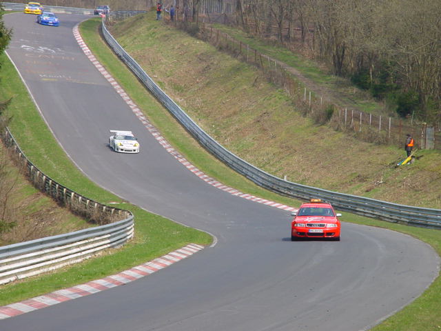 Zitate aus der Fachpresse: http://www.motorsport2000.de Somit wurde der Kreis der Gesamtsieganwärter auf einen Schlag relativ groß und ein halbes Dutzend Porsche, der Getrag-BMW sowie der Schall-Mercedes peilten nun den Tagessieg an. Nach dem Training freuten sich zunächst Porsche-Neuling Arno Klasen und Jürgen Alzen im Porsche 996 über die Pole-Position, dicht gefolgt von den Markenkollegen Ulli Richter/Ulrich Gallade und Wolfgang Destree/Kersten Jodexnis. Aber nach der Grünschaltung der Startampel konnte sich Klasen nur 500 Meter über die Führung erfreuen, ehe der Eifelaner den Propson-Porsche bis über beide Ohren im Kies des Castrol-S einbuddelte. Klasen, der sich in den letzten Jahren am Steuer diverser Toyota Corolla und BMW 325i in VLN-Kreisen einen Namen als besonders spektakulärer Fahrer gemacht hatte, mußte nun die gesamte erste Startgruppe passieren lassen, ehe er von einem Sicherheitsfahrzeug befreit wurde. Die anschließende Aufholjagd war beeindruckend und führte das Duo bis auf Platz vier vor, ehe Teamkollege Jürgen Alzen in der Fuchsröhre mit dem Renault Megane von Jürgen Kell kollidierte und beide Fahrzeuge heftig beschädigt wurden.
